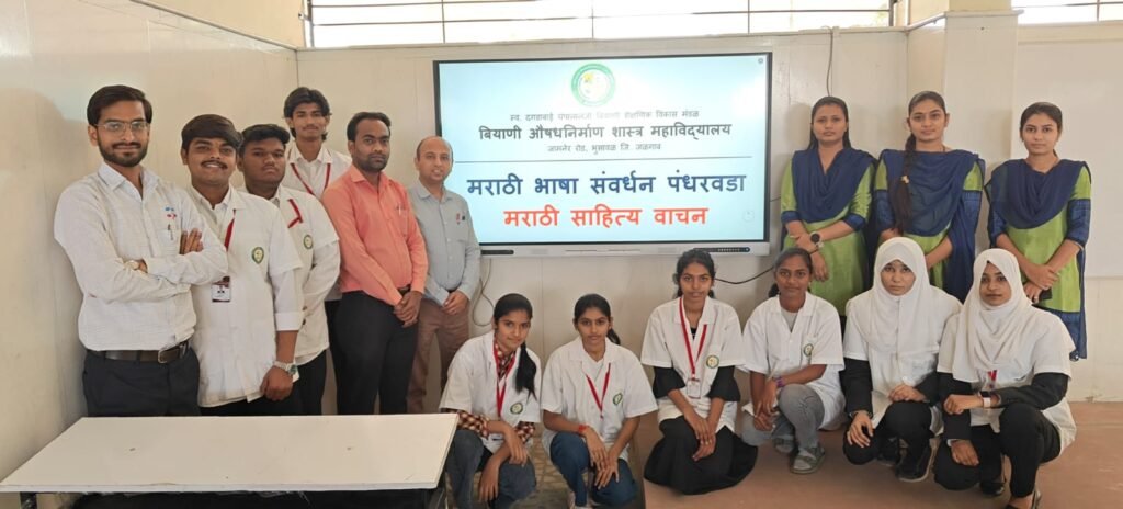 рдмрд┐рдпрд╛рдгреА рдлрд╛рд░реНрдорд╕реА рдХреЙрд▓реЗрдЬ, рднреБрд╕рд╛рд╡рд│ рдпреЗрдереЗ рдорд░рд╛рдареА рднрд╛рд╖рд╛ рд╕рдВрд╡рд░реНрдзрди рдкрдВрдзрд░рд╡рдбрд╛ рдирд┐рдорд┐рддреНрдд рдорд░рд╛рдареА рд╕рд╛рд╣рд┐рддреНрдп рд╡рд╛рдЪрдирд╛рдЪрд╛ рдЙрдкрдХреНрд░рдо рдЙрддреНрд╕рд╛рд╣рд╛рдд рд╕рд╛рдЬрд░рд╛ рдХрд░рдгреНрдпрд╛рдд рдЖрд▓рд╛. рдпрд╛ рдЙрдкрдХреНрд░рдорд╛рджреНрд╡рд╛рд░реЗ рд╡рд┐рджреНрдпрд╛рд░реНрдереНрдпрд╛рдВрдиреА рдорд░рд╛рдареА рд╕рд╛рд╣рд┐рддреНрдпрд╛рдЪреЗ рд╡рд╛рдЪрди рдХрд░реВрди рднрд╛рд╖реЗрдкреНрд░рддреА рдЕрднрд┐рдорд╛рди рдЖрдгрд┐ рдЬрдкрдгреВрдХ рдХрд░рдгреНрдпрд╛рдЪрд╛ рд╕рдВрджреЗрд╢ рджрд┐рд▓рд╛. #рдорд░рд╛рдареАрднрд╛рд╖рд╛ #рдорд░рд╛рдареАрд╕рд╛рд╣рд┐рддреНрдп