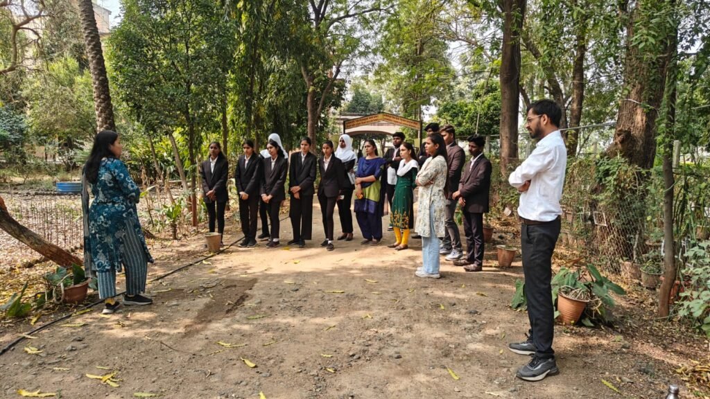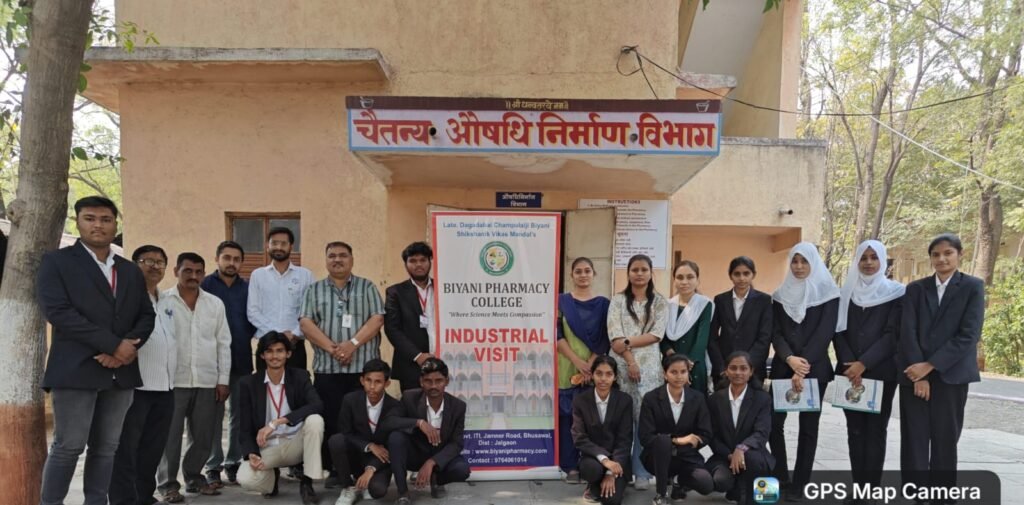 Students of Biyani Pharmacy College visited the herbal garden at Chaitanya Ayurved Mahavidyalaya, located at “Chaitanyavan”, National Highway No. 6, Sakegaon, Taluka Bhusawal, Dist. Jalgaon, Maharashtra. The visit provided students with valuable knowledge about medicinal plants, their identification, cultivation, and therapeutic uses in Ayurveda, enhancing their understanding of herbal medicine and natural drug sources.