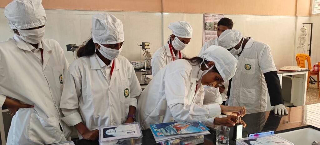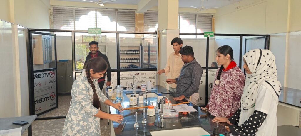 Students at Biyani Pharmacy College, Bhusawal actively engaged in hands-on laboratory experiments, bridging the gap between theoretical knowledge and practical application. These sessions help students develop essential skills and gain real-world experience in pharmaceutical practices.